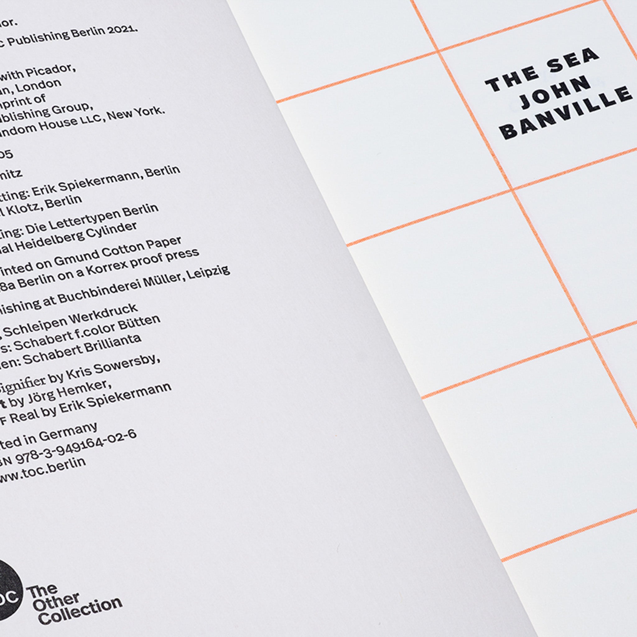 Our edition of Banville’s The Sea is set by Erik Spiekermann in Signifier, designed by Kris Sowersby. Signifier is a “brutalist“ response to 17th century typefaces. The jacket design is inspired by a classic tweed pattern with a futuristic touch.